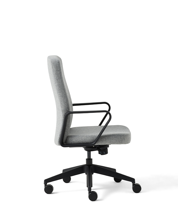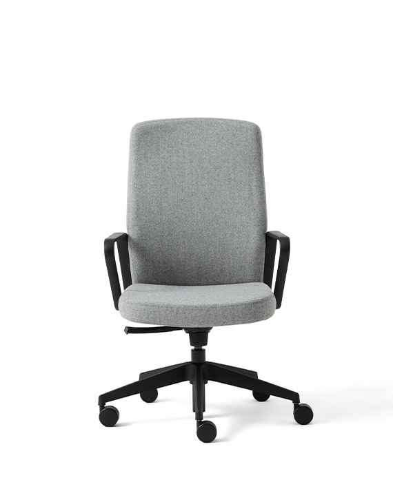 - Fully upholstered shell with fixed arms